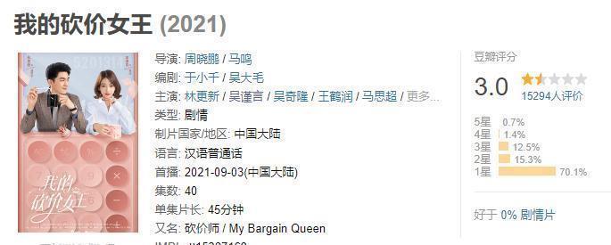 《我的砍价女王》更绝,和林更新对戏像小学生吵架,豆瓣 3.0 分!《正芳华》有殷桃、左小青抬轿,她照旧演得难受无比。