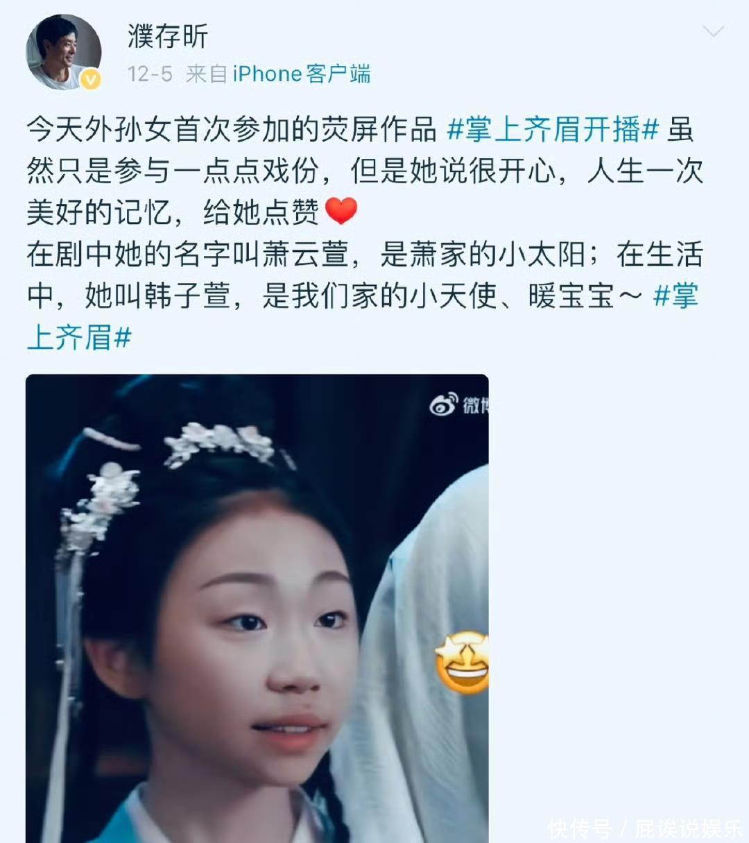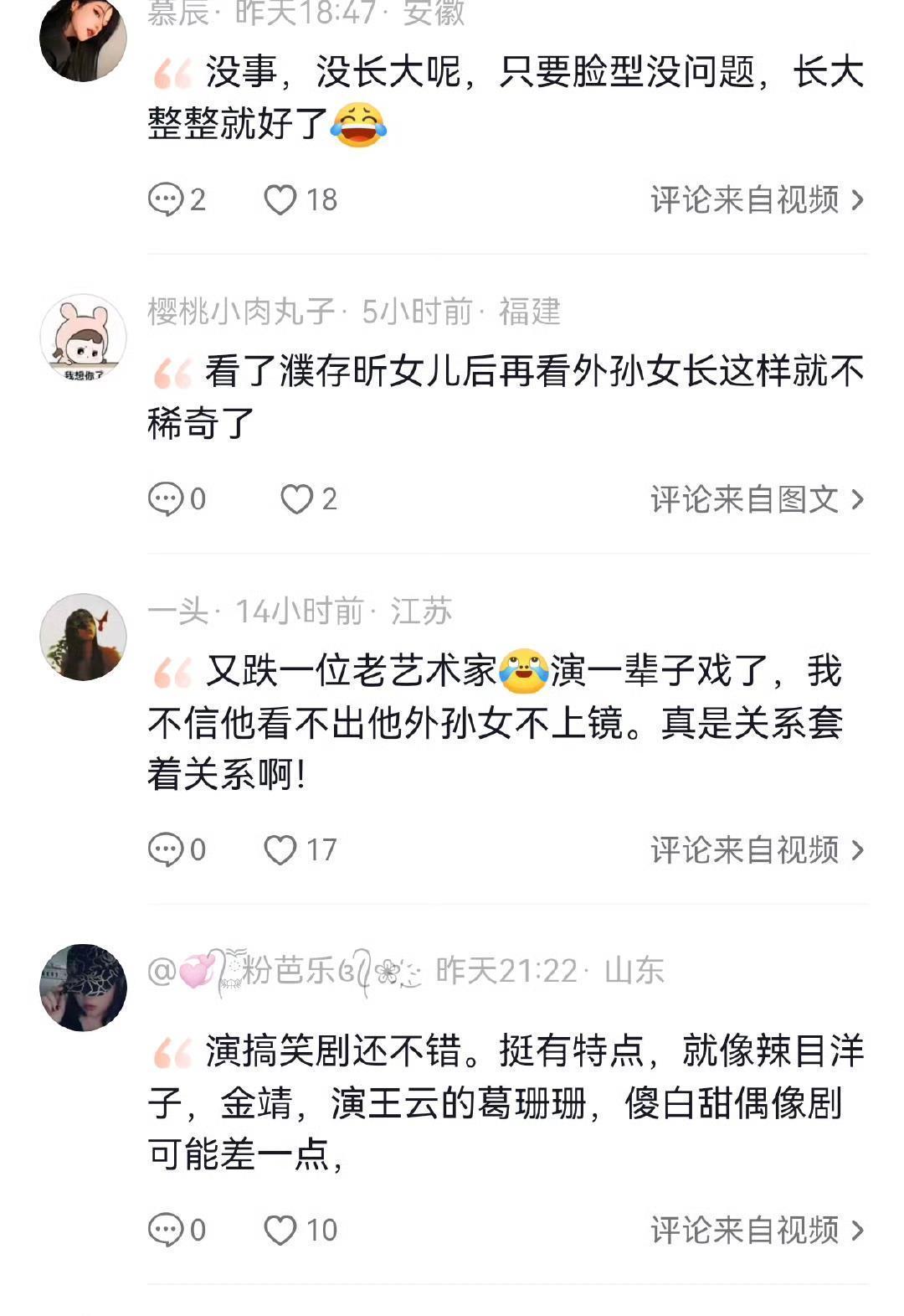 事件的开头是古装短剧《掌上皆眉》的开播。濮存昕在外交平台共享外孙女演出“萧家小太阳”萧云萱的剧照,字里行间尽是外公的宠溺,强调这仅仅孩子“东谈主生一次好意思好的缅念念”,戏份少量且通过自主试镜获取。但指摘区很快被坏心席卷,网友聚焦韩子萱的单眼皮、婴儿肥和唇上的痣,“不安妥文娱圈主流审好意思”的评价还算客气,“丑孩子”“歪瓜裂枣”等顶点东谈主身报复不胜入目,更有东谈主平直劝她“360行试试其他行业”。